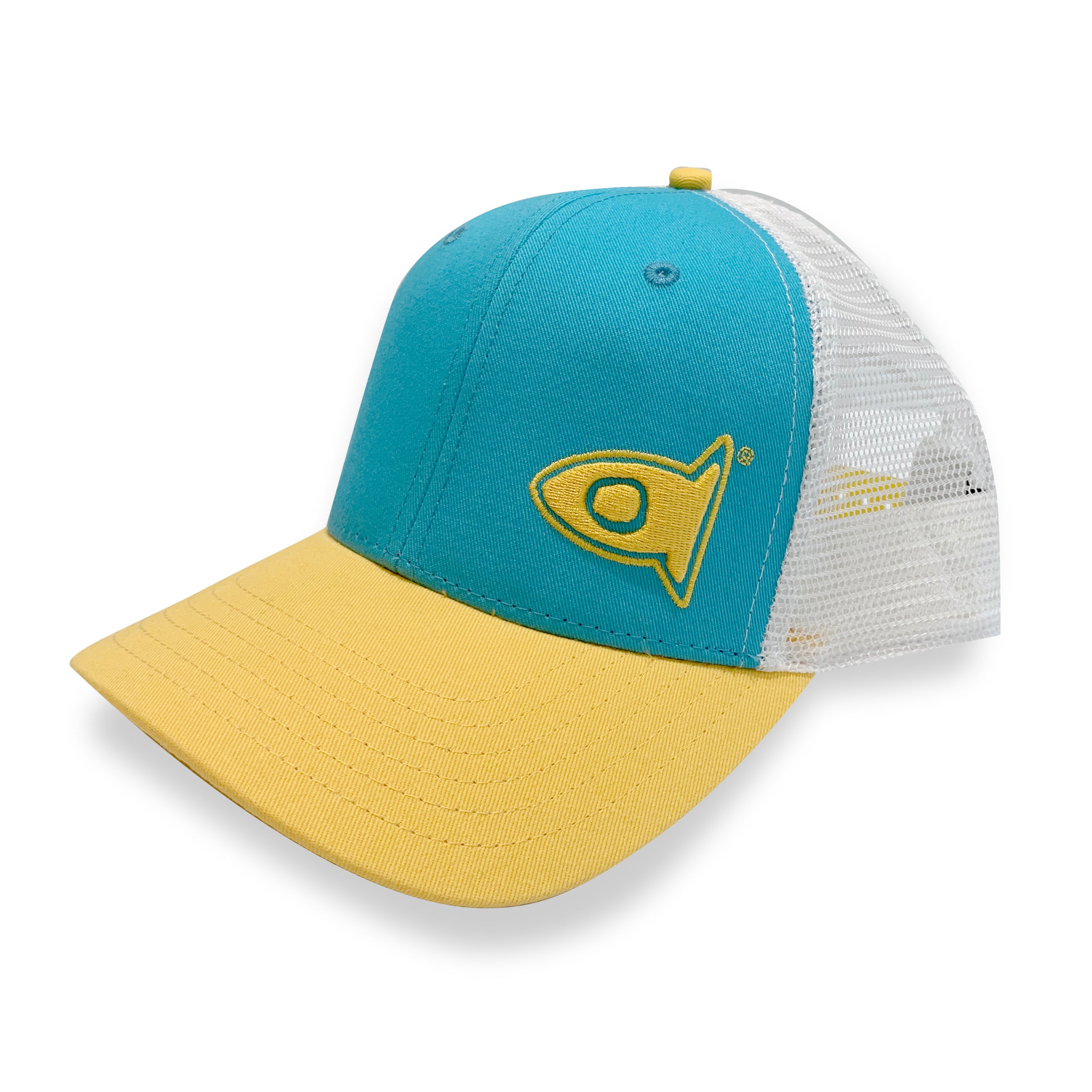 Mid Crown Tricolor Hat – Aqua / Yellow